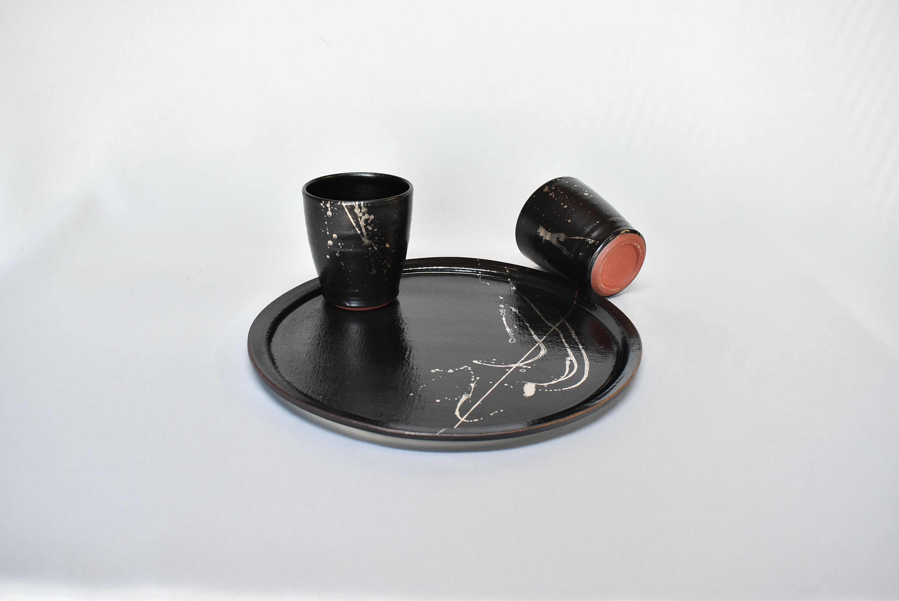 【ふるさと納税】萩焼 銀彩ブラックカップ&プレート皿セット 和食器 おしゃれ 陶器 お洒落 食器 おしゃれ食器 和風食器 ギフト 人気 モダン 和モダン かわいい 可愛い 山口県 萩市 日本製 贈り物 プレゼント お祝い 結婚祝い 高級感 上品 引き出物 誕生日 記念品