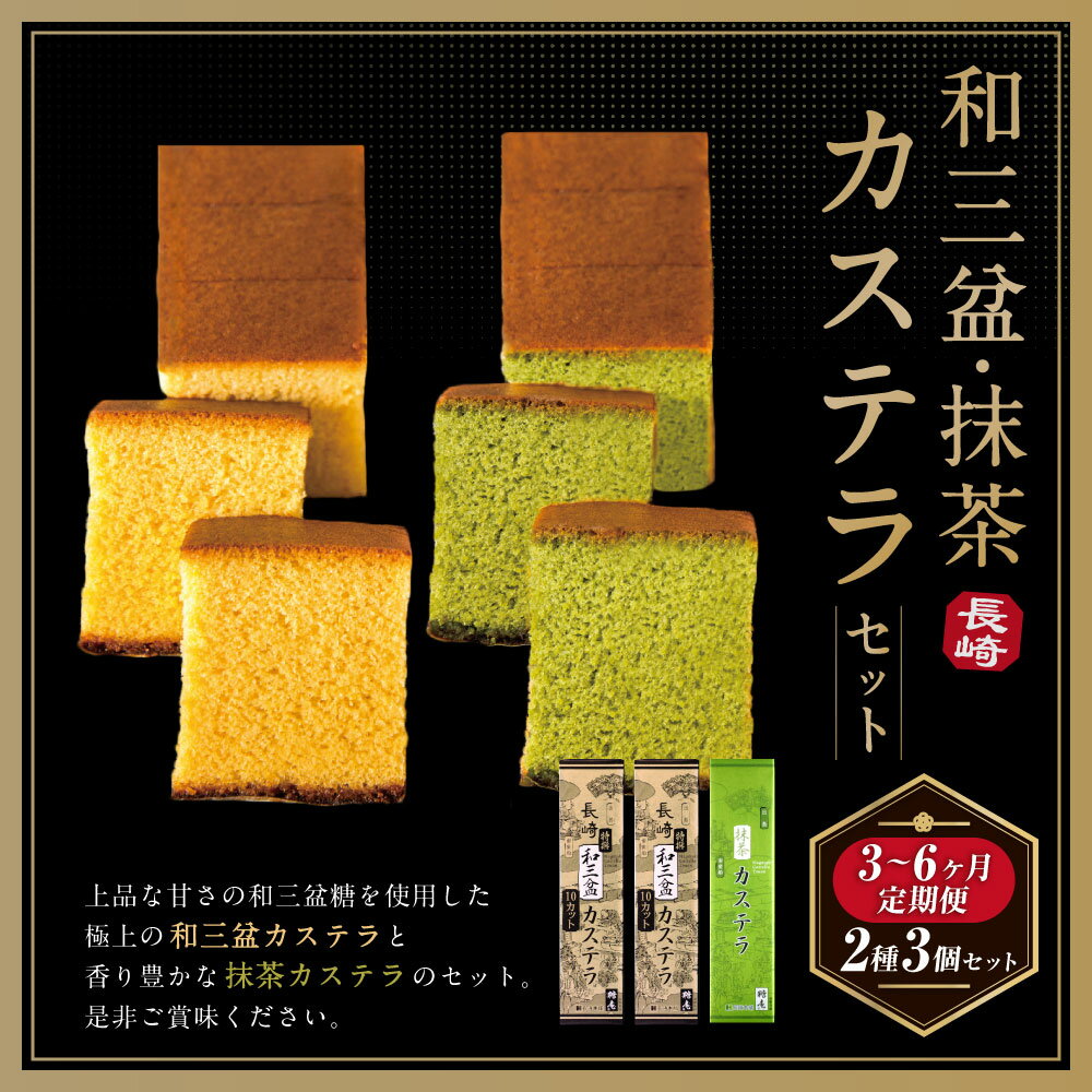 - 【ふるさと納税】和三盆カステラ (290g×2) 抹茶カステラ (290g×1) 選べる定期便 ( 3ヶ月 / 6ヶ月 ) | セット 2種 かすてら スイーツ お菓子 和菓子 おやつ ざらめ ギフト 贈答 長崎県 長崎市 送料無料