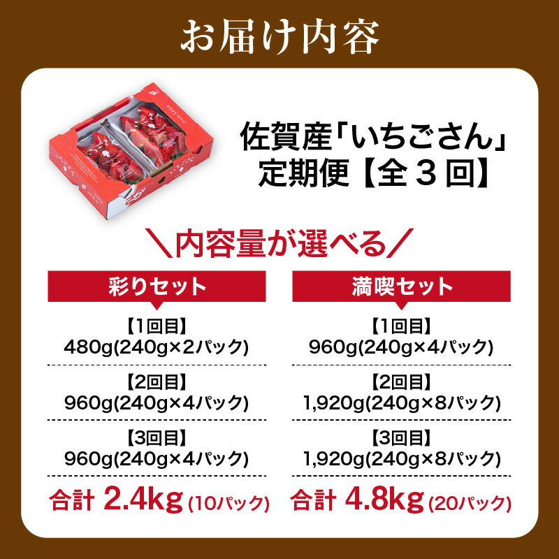 - 【ふるさと納税】佐賀産「いちごさん」定期便 【全3回】<内容量が選べる/ 彩りセット・満喫セット> 【 果物 フルーツ 苺 ふるさと納税 果物 】