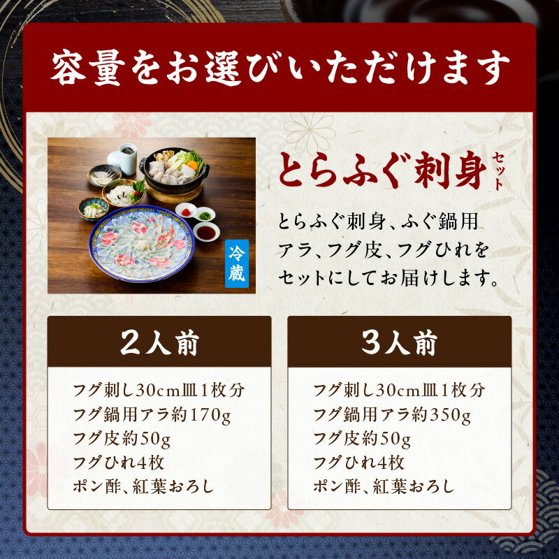 - 【ふるさと納税】とらふぐ刺身セット<内容量が選べる/2人前・3人前>【 てっさ ふぐ刺し 皮刺し ひれ酒 海鮮 伊万里産 とらふぐ 河豚 お刺身 おさしみ フグ鍋 セット 冷蔵便 ふぐ ふぐ刺し ふぐヒレ 】