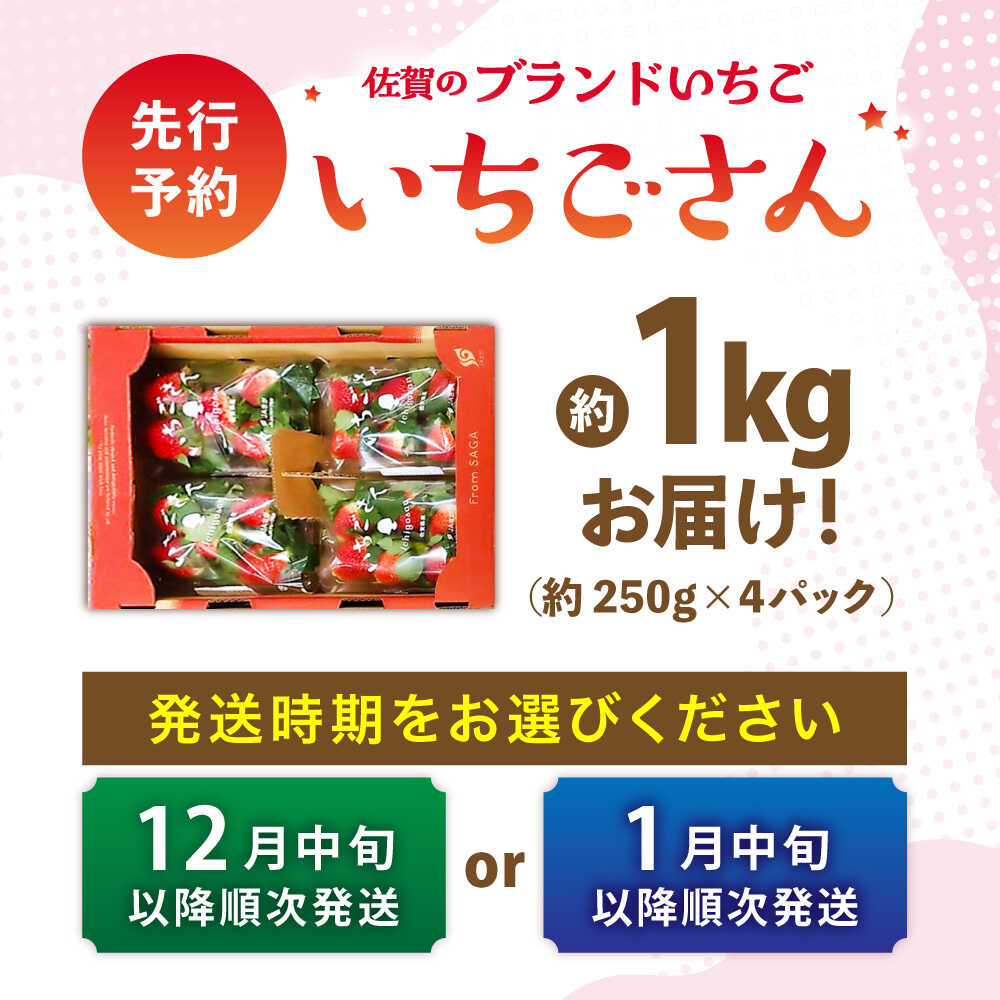 【ふるさと納税】【選べる発送時期】【先行予約】佐賀のブランドいちご いちごさん 約1kg(約250g×4p)/中村青果店[UDK007]