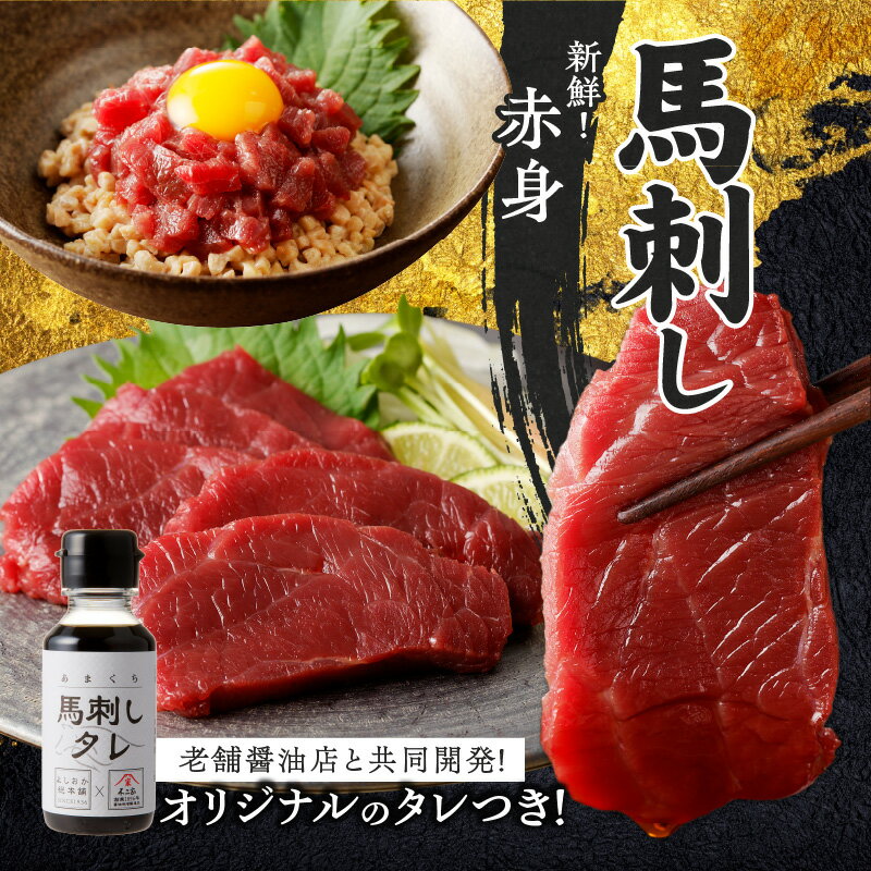 - 【ふるさと納税】生 馬刺し 赤身 100g 選べる 内容量 2袋 200g 4袋 400g 8袋 800g 特製 甘口醤油ダレ 100ml 国産 福岡県産 新鮮 生食用 生馬刺し 真空包装 個包装 肉 馬肉 ブロック 冷蔵 小分け 便利 低カロリー 高たんぱく お取り寄せ 福岡県 久留米市 送料無料