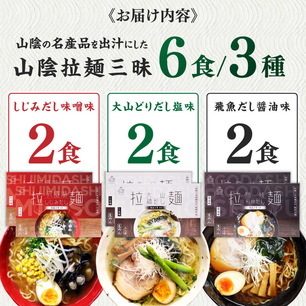 - 【ふるさと納税】ご当地こだわり山陰拉麺三昧 6食セット | ご当地 こだわり 山陰 拉麺 国産 飛魚 蜆 大山鶏 とり ラーメン 生ラーメン ちぢれ麺 特産 島根県雲南市/株式会社出雲たかはし[AIAM009]