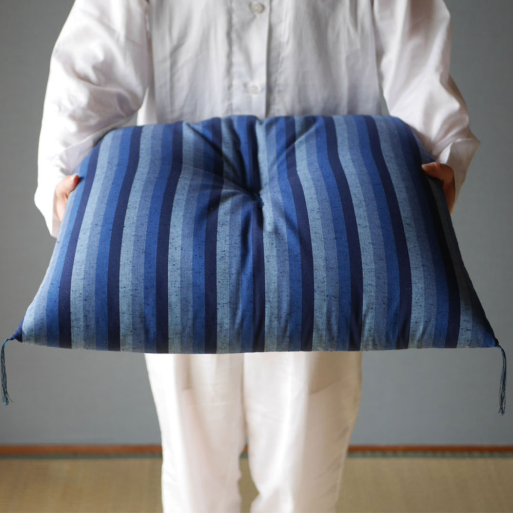 - 【ふるさと納税】筑後織 座布団 つくし 青 ブルー 銘仙判 約55×59cm ざぶとん クッション 枕 和室 洋室 インテリア 生活雑貨 筑後市 日本製 送料無料