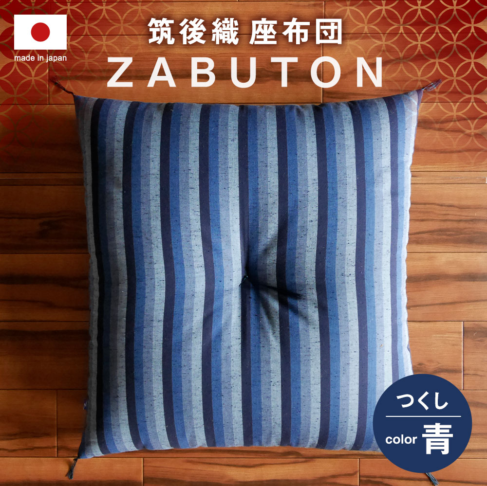 【ふるさと納税】筑後織 座布団 つくし 青 ブルー 銘仙判 約55×59cm ざぶとん クッション 枕 和室 洋室 インテリア 生活雑貨 筑後市 日本製 送料無料