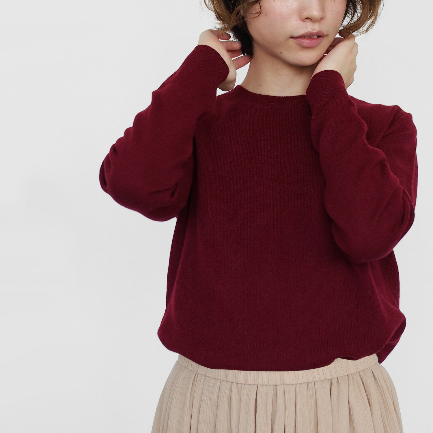 【ふるさと納税】 クルーネック セーター カシミヤ 100% レディース 日本製 M L | ニット クルーネックセーター 薄手 無地 シンプル 長袖 秋冬 冬 新潟県 五泉市 高橋ニット株式会社