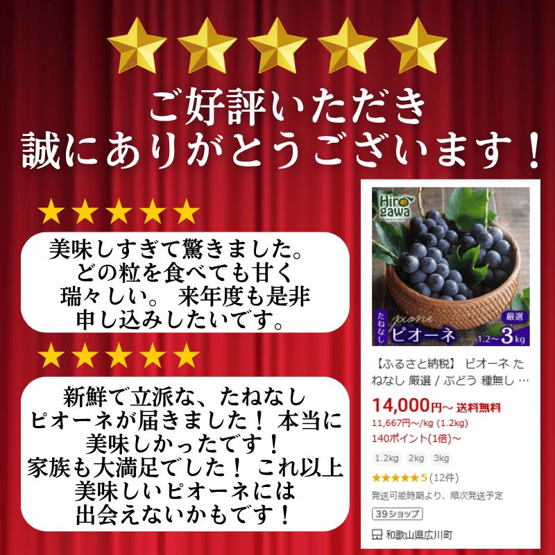 【ふるさと納税】 ピオーネ たねなし 厳選 / ぶどう 種無し 甘い 高級 和歌山 2kg 3kg ※2026年8月中旬~2026年9月中旬に順次発送 ※北海道・沖縄・離島への配送不可 //hokaf