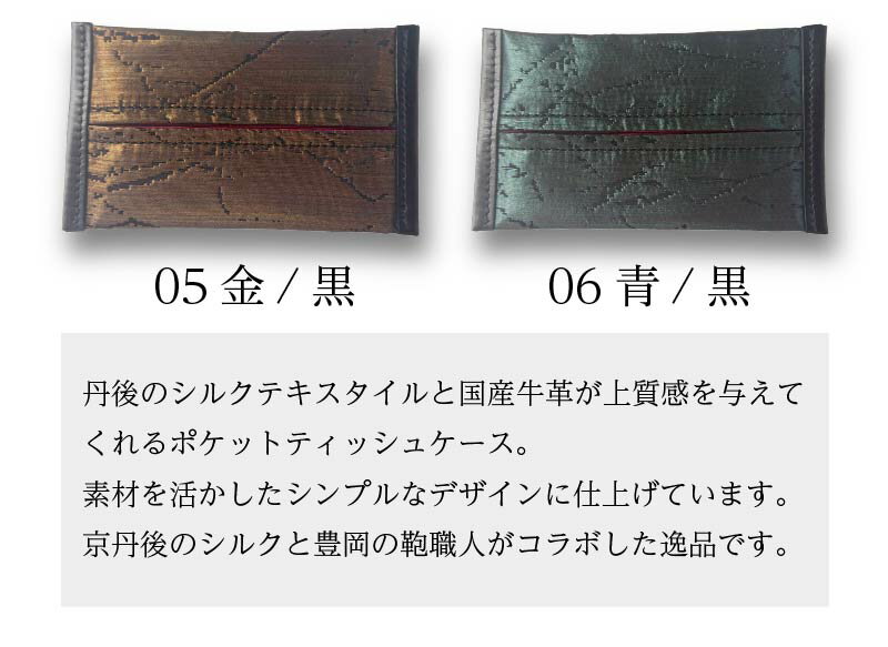 【ふるさと納税】京都・京丹後シルクを使ったポケットティッシュケース 【京丹後のシルクと豊岡の鞄職人がコラボ】 6色 シルク生地 牛革 ナイロン 伝統産業 職人技 しるく 豊岡 鞄 かばん 新生活 送料無料