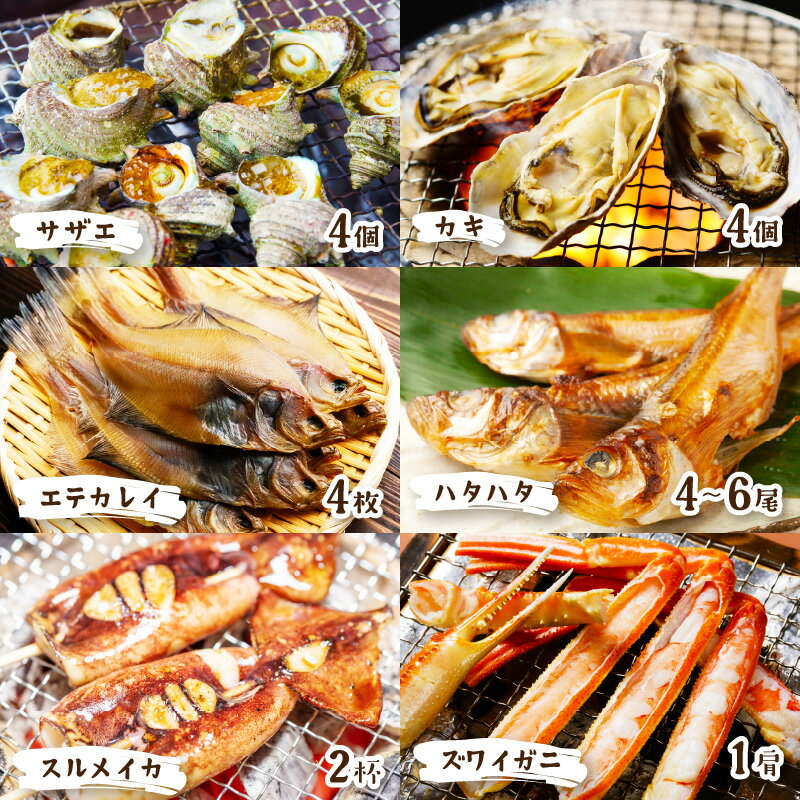 - 【ふるさと納税】【先行予約】大満足!京丹後・海鮮BBQ Eセット 豪華盛り合わせ 生ズワイガニ 付 6種21品(4~5人前)(2026年4月中旬~発送)魚介類 さざえ 蠑螺 カキ かき いか かれい かに カニ ズワイ蟹 バーベキュー アウトドア 個包装 冷凍