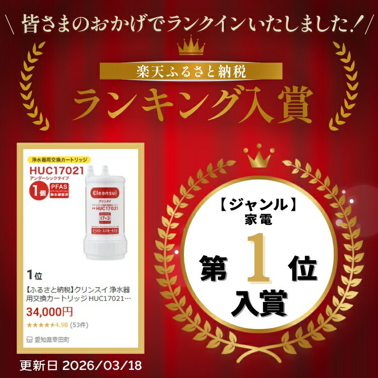 クリンスイ 浄水器用交換カートリッジ HUC17021 アンダーシンクタイプ 水 お水 家庭用 ろ過 交換カートリッジ カートリッジ キッチン 新生活 おいしい水 送料無料