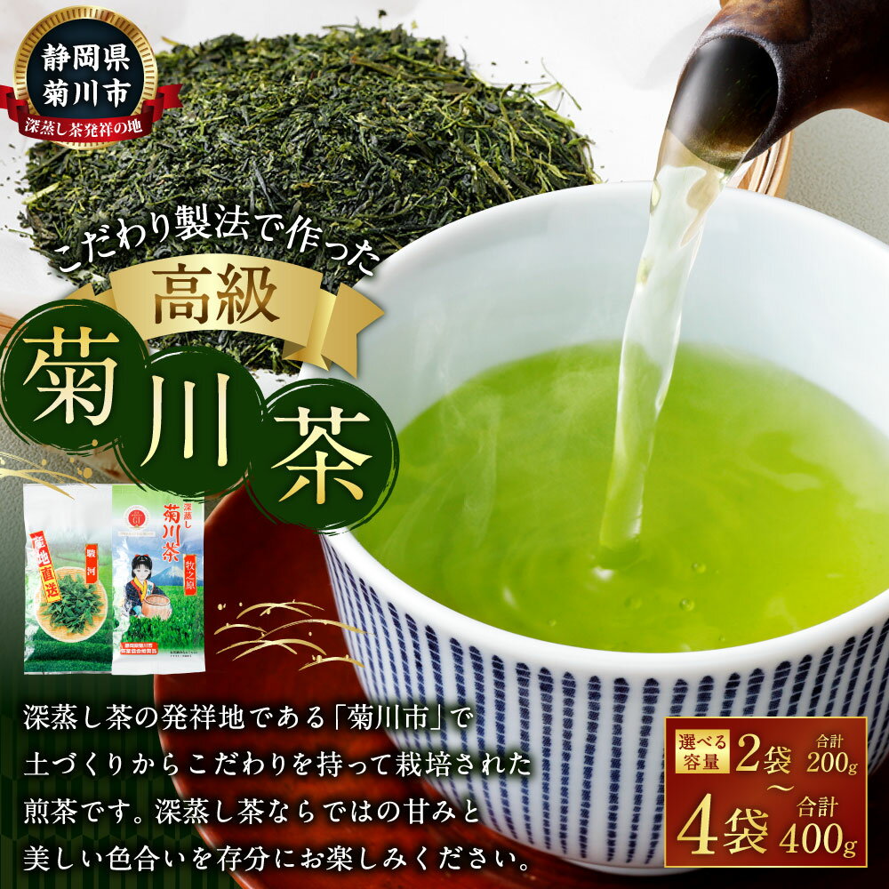 【ふるさと納税】【選べる容量】こだわり製法で作った 高級 菊川茶 2袋 3袋 4袋 1袋あたり100g【深蒸し 煎茶】2種 菊川深蒸し茶 静岡茶 深蒸し茶 お茶 緑茶 茶 日本茶 詰め合わせ お取り寄せ 静岡県 菊川市 送料無料
