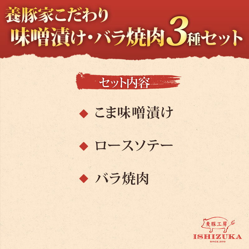 - 【ふるさと納税】 豚肉 こま切れ 味噌漬け ロース ソテー 豚バラ 焼肉 精肉 3種 セット IFFA 金賞 国際コンテスト お中元 お歳暮 贈答用 ギフト プレゼント 豚肉セット 国産 ブランド豚 銘柄豚 美味しい 高級 おかず 肉 沼津市 静岡県