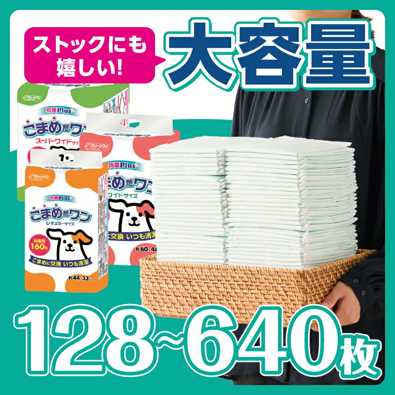- ペットシート 「こまめだワン」 レギュラー 640枚 (160枚×4パック) こまめに交換 抗菌 いつも清潔 薄型 ペットシーツ トイレシーツ クリーンワン シーズイシハラ 富士市 ペット用品 日用品