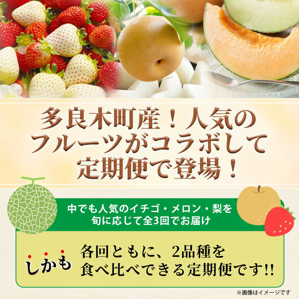 - 【ふるさと納税】《フルーツ 定期便3回・各2品種》2026年発送 多良木町産 いちご・メロン・梨 【各 2品種 】 食べ比べ 3回配送 数量限定 東光寺 梨 西山果樹園 木村メロン園 坂下農園 イチゴ フルーツ 定期便 果物 果実 旬 名産 熊本県 多良木町 送料無料