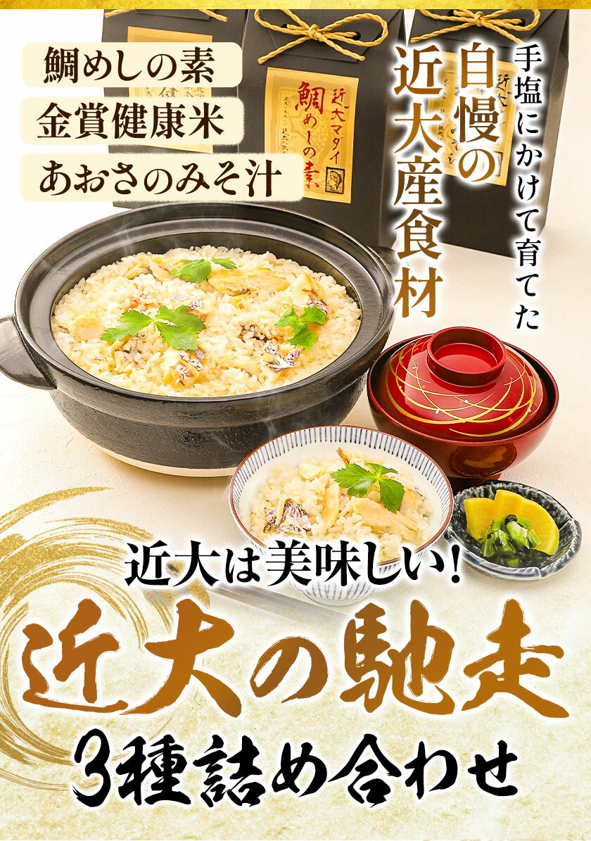- 【ふるさと納税】近大は美味しい 近大の馳走詰合せ 《12月上旬-中旬に出荷予定(土日祝除く)》和歌山県 日高町 鯛めしの素 あおさのみそ汁 みそ汁 金賞健康米 米 アーマリン近大