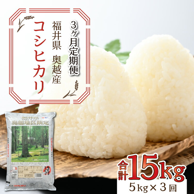 - 【ふるさと納税】【3ヶ月連続定期便】令和7年産 福井県産奥越コシヒカリ5kg ×1袋(5kg × 3ヶ月) / こしひかり 定期便 お米 米 こめ ブランド米 精米 白米 国産 福井県産 勝山市