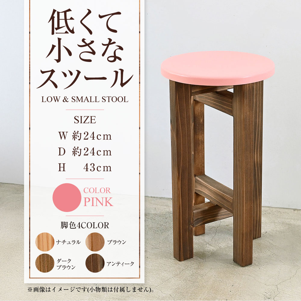 【ふるさと納税】低くて小さなスツール【ピンク】 | 1脚 幅24cm 奥行24cm 高さ43cm スツール 椅子 イス 腰掛 腰掛け チェア 丸椅子 丸いす 円形 家具 コンパクト スタンド インテリア オシャレ おしゃれ 木製 杉無垢材 パイン集成材 茨城県 守谷市 送料無料