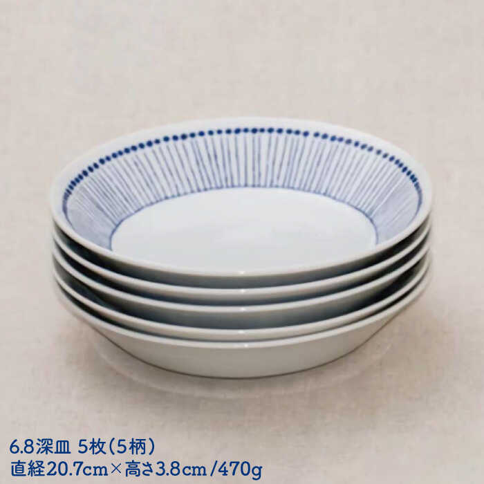 【ふるさと納税】【美濃焼】ブルー&ホワイト 蒼の器5柄 カレー / パスタ皿 5個セット【うつわやさん-カネ忠】≪土岐市≫ 食器 深皿 冷麺 [MBO003]