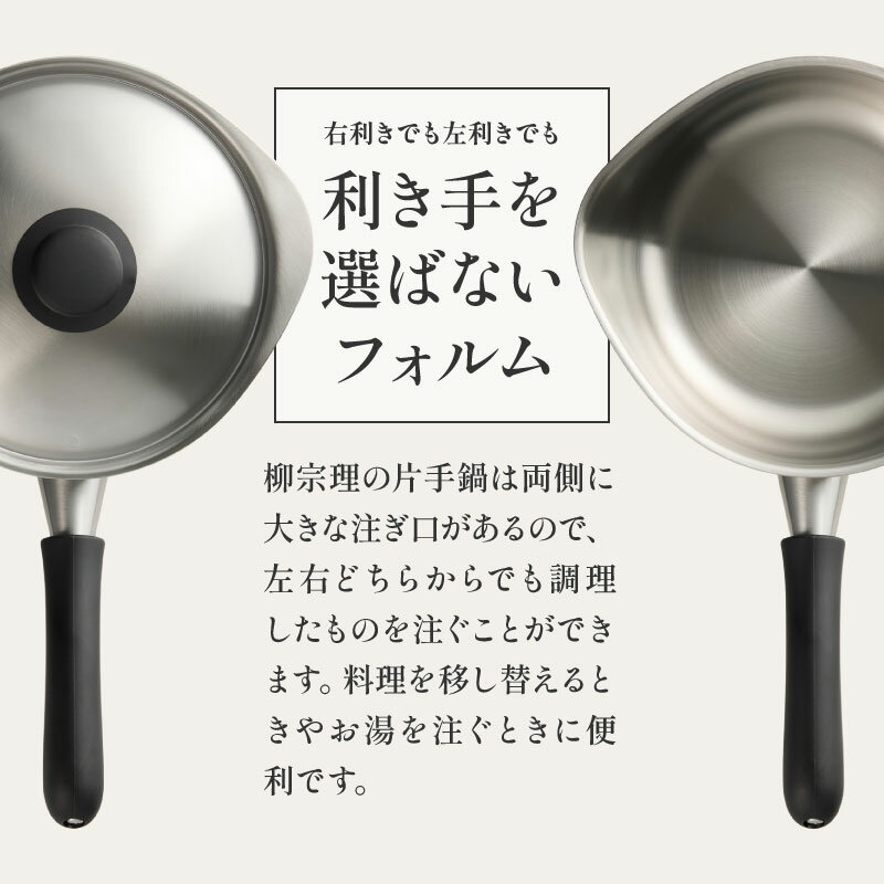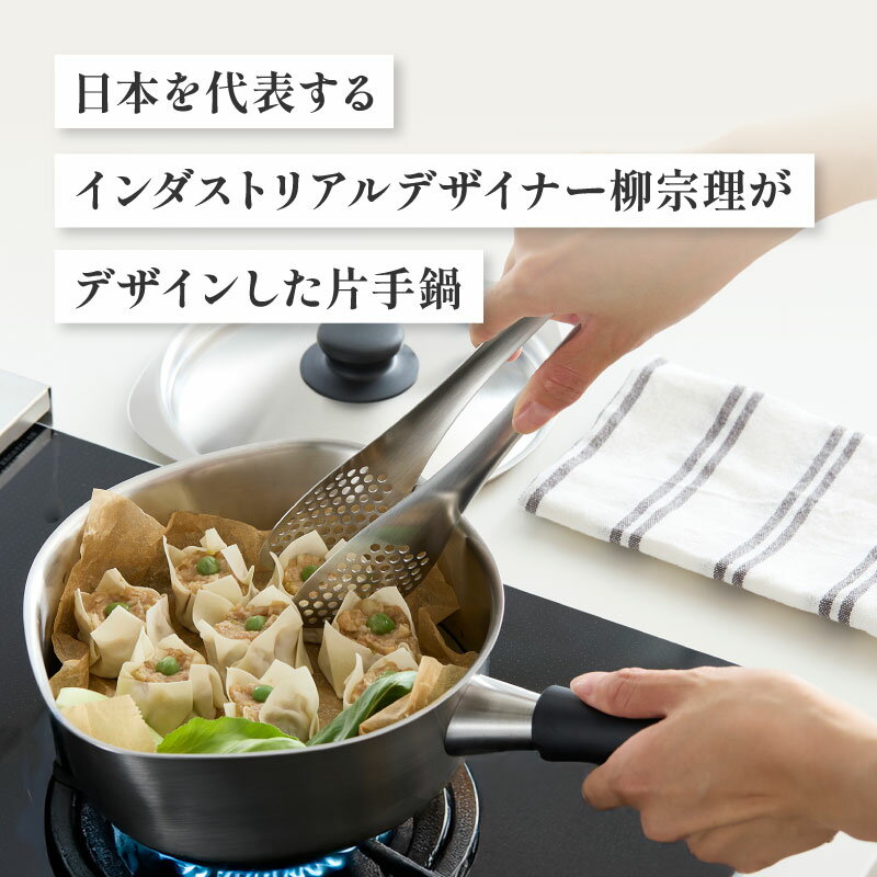 - 【ふるさと納税】 柳宗理 デザイン 片手鍋 つや消し 18cm 選べる トング付き 【 柳宗理 グッドデザイン賞受賞 鍋 蓋 ステンレス 注ぎやすい 調理器具 キッチン用品 キッチンツール 穴あき 穴あきトング ガス火 日本洋食器 新潟県 燕市 燕三条 】 [10001390]
