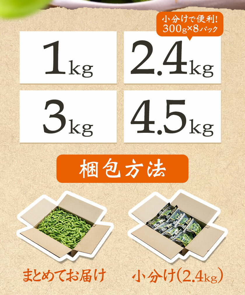 - 【ふるさと納税】枝豆 先行予約 えだまめ 「湯あがり娘」選べる 1kg 2.4kg(300g×8パック) 3kg 4.5kg (茶豆味)有限会社大嶋農園 《2026年7月中旬-8月上旬頃出荷》 えだまめ 野菜 国産 甘み 香り 濃厚 つまみ ビールのおつまみ ビールのつまみ 【配送不可地域あり】