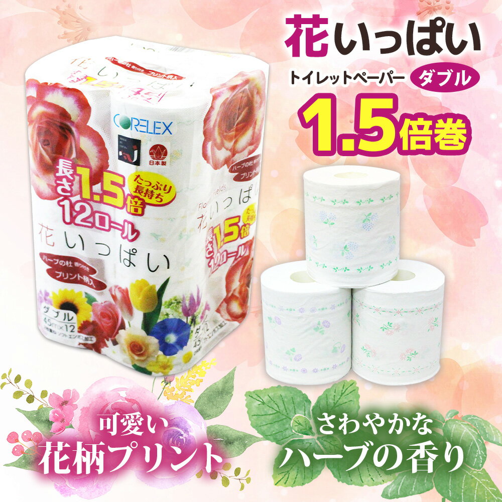 【ふるさと納税】≪選べる 内容量 ≫ 長持ち 1.5倍巻き 花いっぱい トイレットペーパー ダブル 45m 計72ロール & 36ロール 全18種 花柄 プリント ハーブ 香り付き 日本製 まとめ買い 防災 常備品 ペーパー エコ 日用雑貨 消耗品 備蓄 送料無料 北海道 倶知安町 日用品