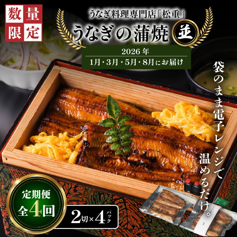 【ふるさと納税】 全4回 定期便 うなぎ料理 専門店 松重 まつじゅう 【 並 】 うなぎ 蒲焼 2切(1尾)× 4パック 【1・3・5・8月お届け】 定期 鰻 ウナギ うな重 うな丼 ひつまぶし 土用 丑の日 数量 期間 限定 鹿児島 おすすめ ランキング プレゼント ギフト