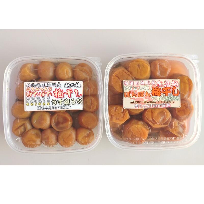 【ふるさと納税】特級 【保存料不使用】減塩 ポタポタ梅干しセット(塩分濃度3%) 520g (260g×2パック)新潟県産越の梅&南高梅 地元 養蜂農家 はちみつ 国産ハチミツ 高級 大粒白梅 梅干 梅干し 人気 ご家庭用 天然 新潟県糸魚川 うめぼし はちみつ梅 梅ちゃんfarm笠井
