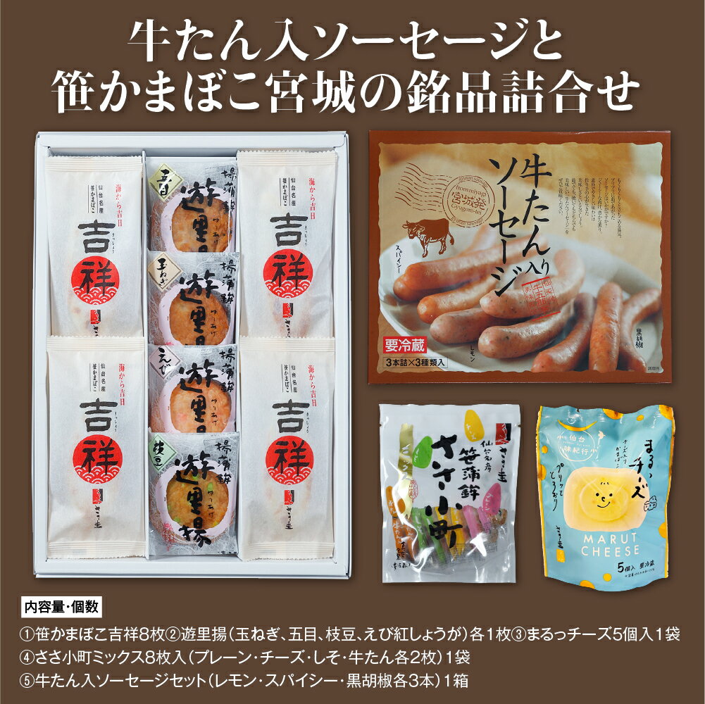 - 【ふるさと納税】ささ圭 牛たん入ソーセージと笹かまぼこ宮城の銘品詰合せ 笹かま 笹蒲鉾 蒲鉾 惣菜 海鮮 かまぼこ 牛タン