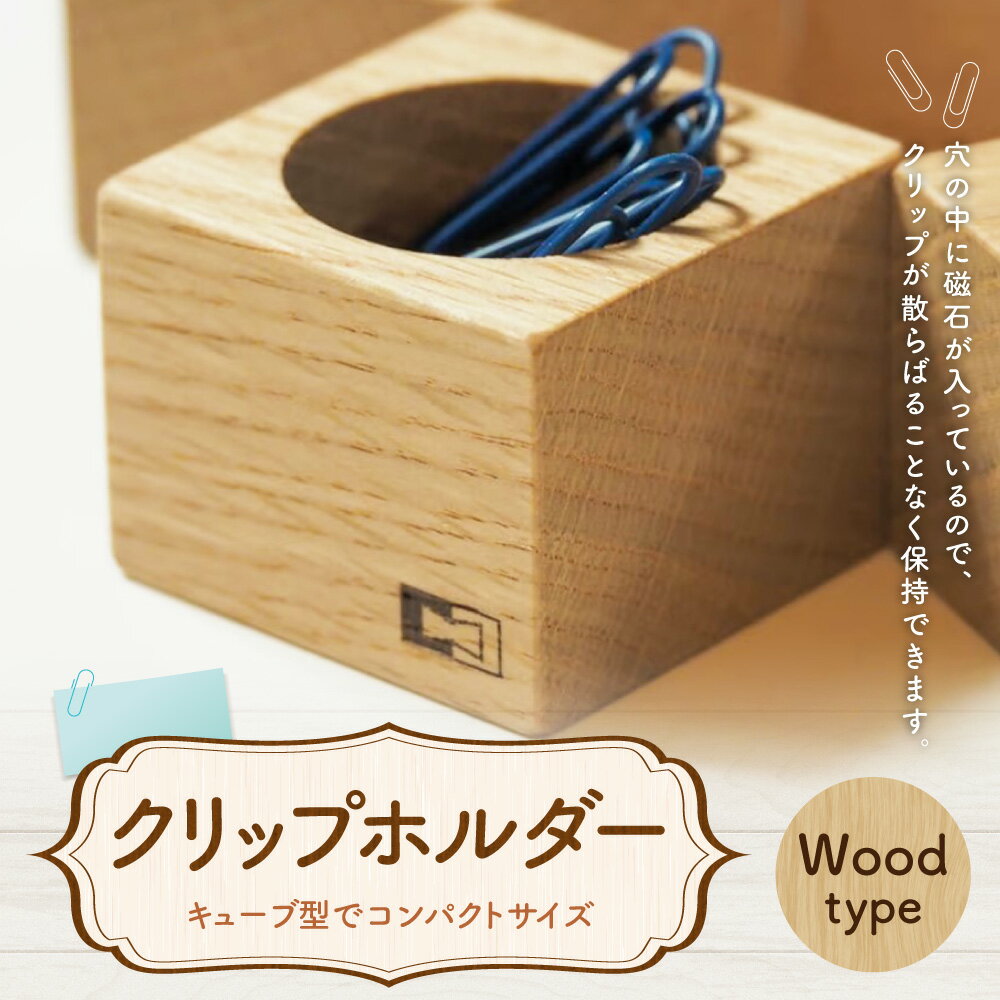 【ふるさと納税】クリップホルダー クリップ入れ クリップケース 木製 ナラ キューブ型 マグネット 磁石 コンパクトサイズ 文房具 雑貨 小物 北海道 北広島市加工 送料無料