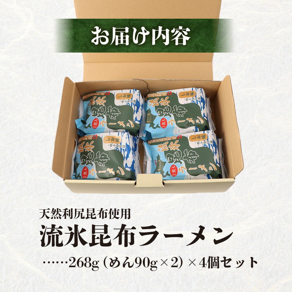 【ふるさと納税】天然利尻昆布使用 流氷昆布ラーメン2食入り×4個セット | 卵不使用 天然 利尻 昆布 ラーメン 昆布ラーメン 利尻昆布 流氷昆布 栄養豊富 麺類 和食 昆布麺 練り込み麺 人気 国産昆布 旨味 風味豊か 昆布だし 和風 お取り寄せ 北海道 雄武町 雄武【03234】