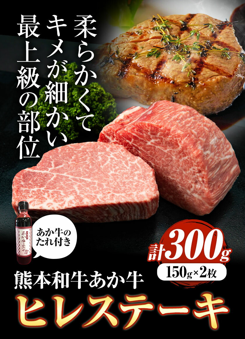 【ふるさと納税】あか牛極上ヒレステーキセット 約150g×2枚 合計約300g あか牛のたれ200ml付き 和牛 ヒレ ステーキ 熊本県産 九州産 国産 冷凍 送料無料《90日以内に出荷予定(土日祝除く)》