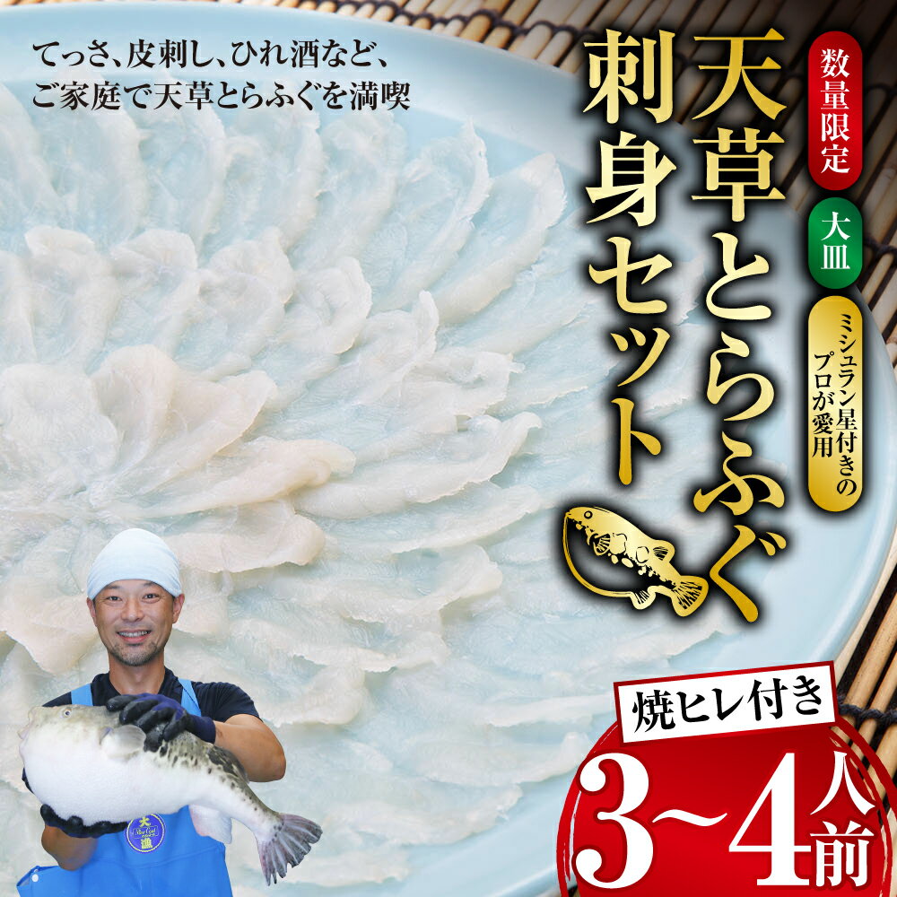 【ふるさと納税】【数量限定】【大皿】【ミシュラン星付きのプロが愛用】天草とらふぐ刺身セット 3~4人前 焼ヒレ付き とらふぐ ふぐ 河豚 虎河豚 魚介 魚貝類 焼きひれ セット 刺し身 刺身 熊本 【2025年12月下旬~2026年3月下旬まで順次発送予定】