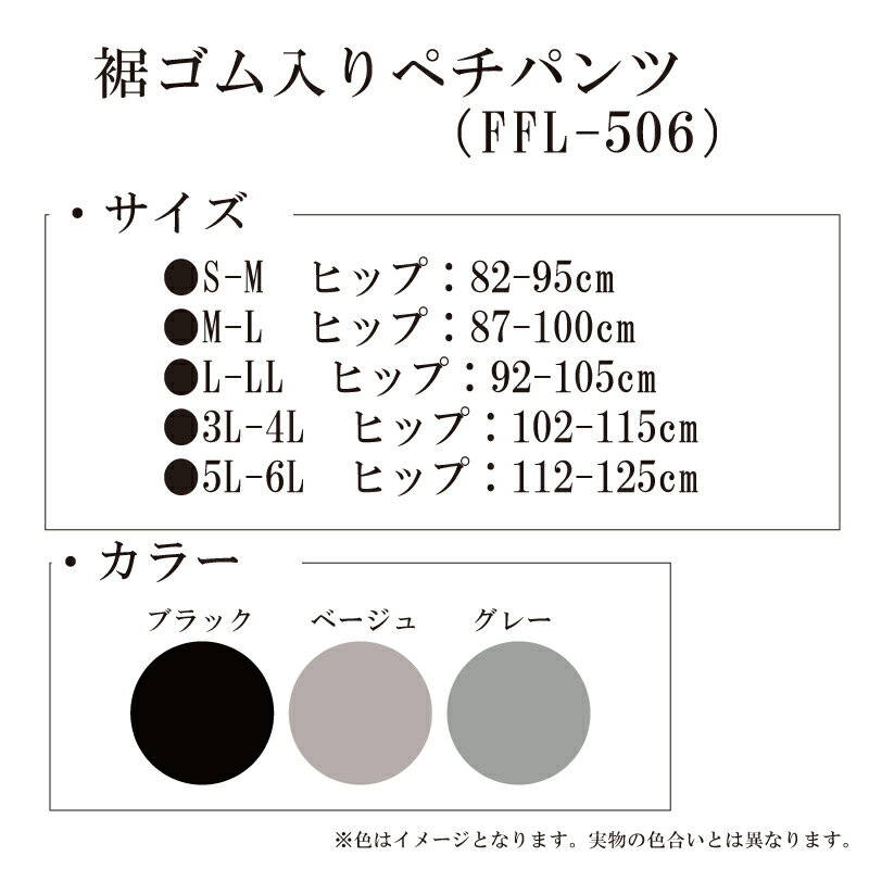【ふるさと納税】 【インナーシリーズ】裾ゴム入りペチパンツ ブラック・ベージュ・グレー S-M M-L L-LL 3L-4L 5L-6L FFL-506 日用品 美容 生活用品 健康用品 健康グッズ スポーツ 旅行 トラベル 着圧
