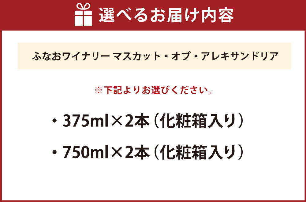 - 【ふるさと納税】<選べる容量>ふなおワイナリー マスカット・オブ・アレキサンドリア 375ml×2本セット 750ml×2本セット 白ワイン・お酒・ワイン・アルコール・甘口・辛口