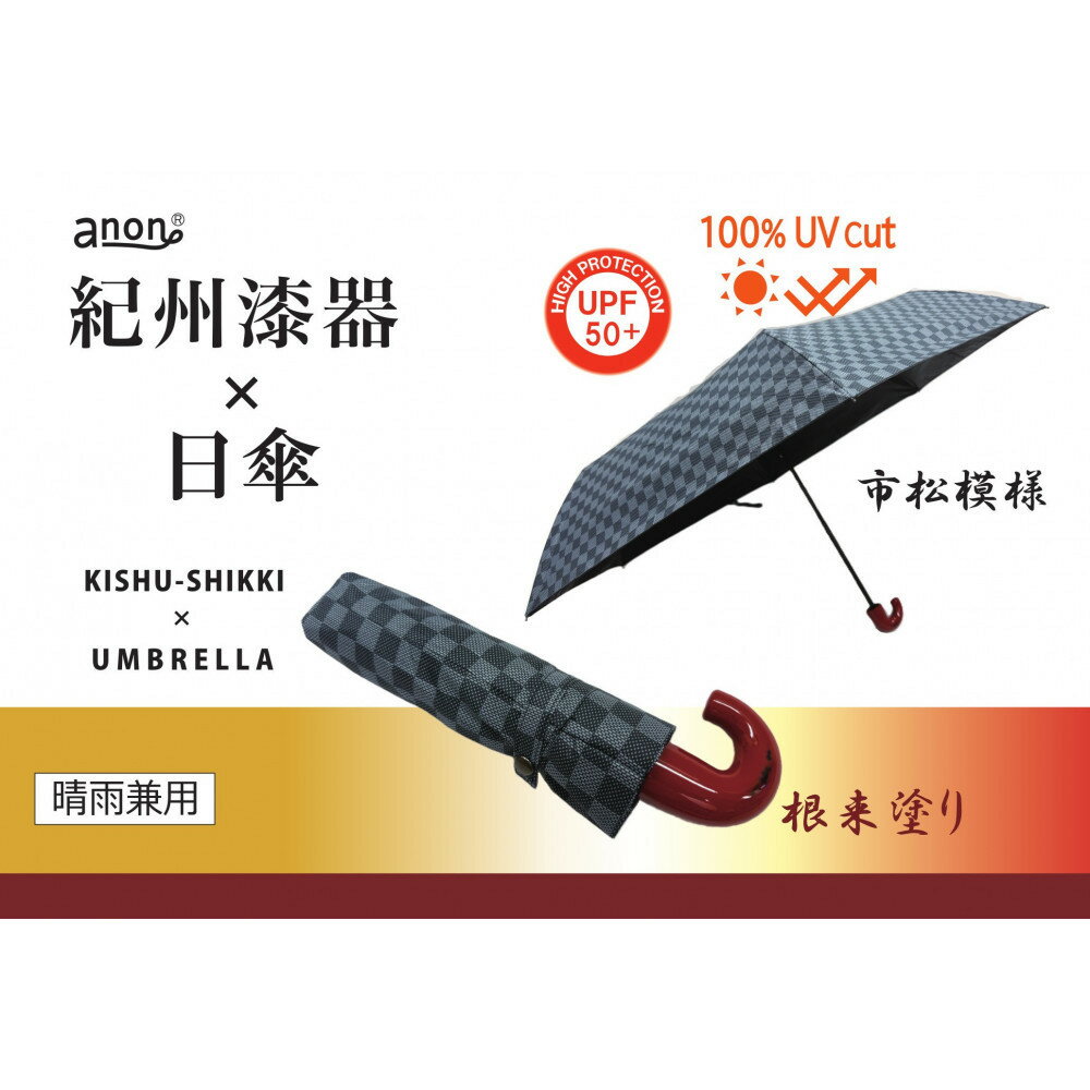 【ふるさと納税】【持ち手の色選択可】[ふるさと納税]anon 市松模様 晴雨兼用傘 曙塗りor 根来塗り 黒コーティング加工 紀州漆器アンブレラ 和柄 日傘 100%UVカット UPF50+ 折りたたみ傘 ギフト箱入り