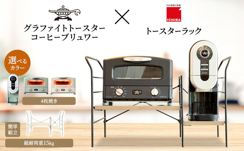 - 【ふるさと納税】アラジン グラファイト グリル & トースター 4枚焼き コーヒーブリュワー トースターラック グランデベル セット【 選べるカラー・組合せ 】 Aladdin AGT-G13FJ ACO-D01AF ICHIBA ラック 収納 新生活 お届け:約1か月後お届け