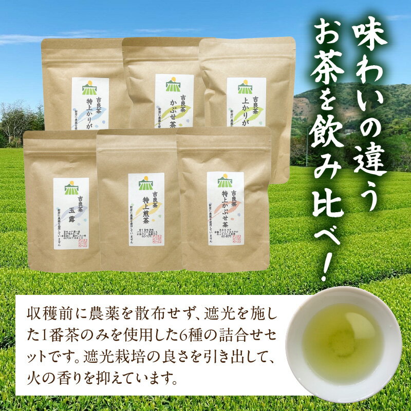- 【ふるさと納税】《 吉良茶 》味わいの違うお茶を飲み比べ!茶葉6種セット【計260g】玉露 特上煎茶 特上かぶせ茶 特上かりがね かぶせ茶 上かりがね 遮光を施した一番茶 収穫前農薬不使用 水出し お湯出し 煎茶 緑茶 日本茶 和 国産 西尾市 茶 送料無料 O057