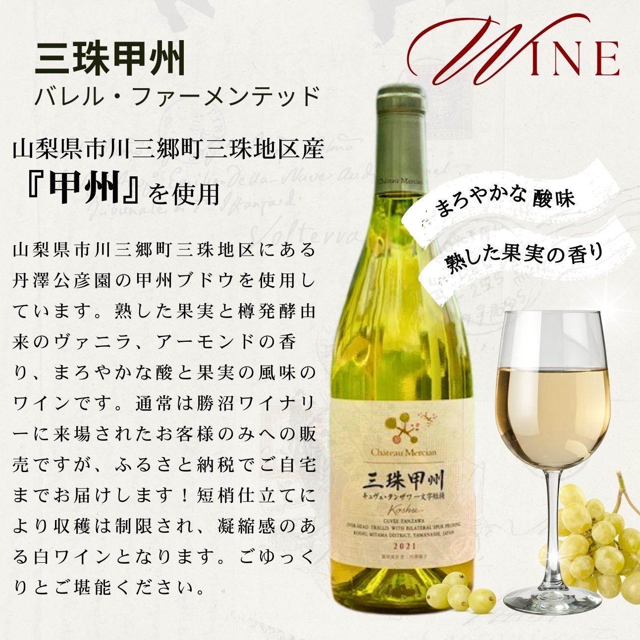 - 【ふるさと納税】ワイン 白ワイン 山梨 750ml 「三珠甲州 バレル・ファーメンテッド」 シャトー・メルシャン [5839-2264]