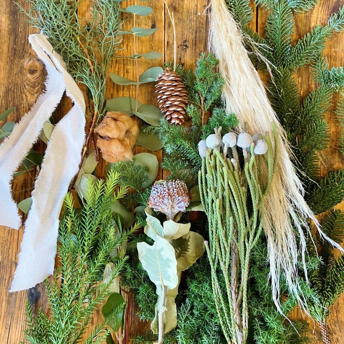 【ふるさと納税】Xmas 自分で作る スワッグ 【白】新潟 阿賀 たけむら生花店 キット|季節 おまかせ インテリアグリーン ドライフラワー 贈り物 ギフト 送料無料 プリザ クリスマス プレゼント 壁掛け おしゃれ ナチュラル 自作 期間限定 ※2025年11月中旬頃より順次発送