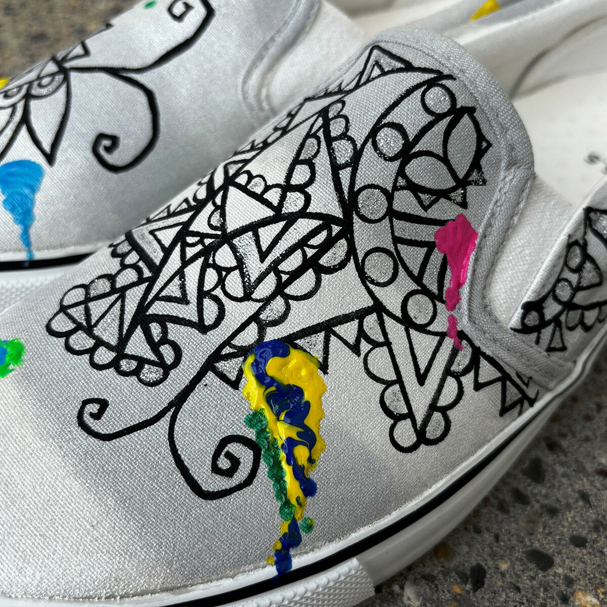 - 【ふるさと納税】スニーカー iron(s) アイアン 手描きスリッポン 幾何学模様 アシンメトリー 大人可愛い おしゃれ レディース メンズ ユニセックス ワイズ 2E 22.0~28.0cm【受注制作】