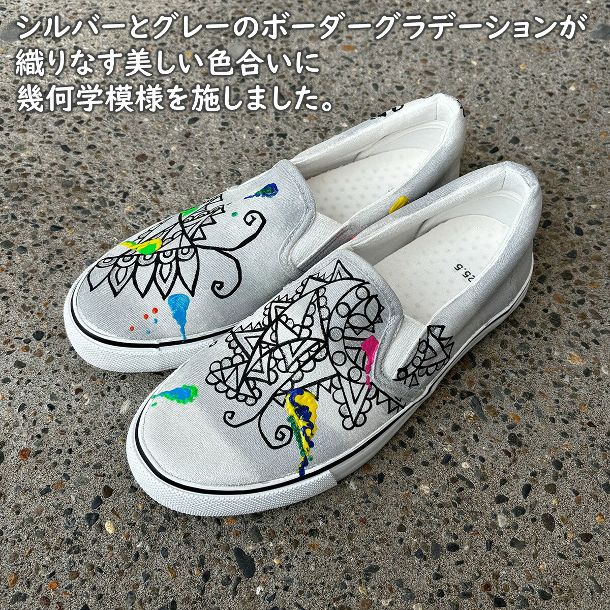 【ふるさと納税】スニーカー iron(s) アイアン 手描きスリッポン 幾何学模様 アシンメトリー 大人可愛い おしゃれ レディース メンズ ユニセックス ワイズ 2E 22.0~28.0cm【受注制作】