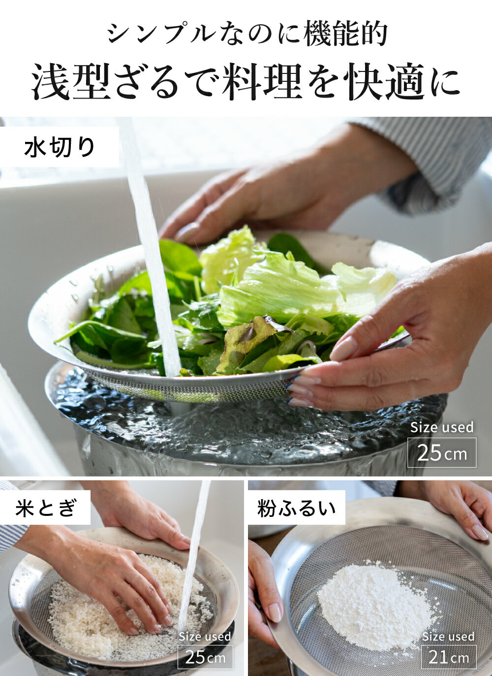 - 【ふるさと納税】貝印 SELECT100 ステンレス 浅型ざる 21cm・25cm 000DF5009 ・000DF5008 セレクト100 関市 ザル キッチンツール 料理 刃物 おしゃれ 便利