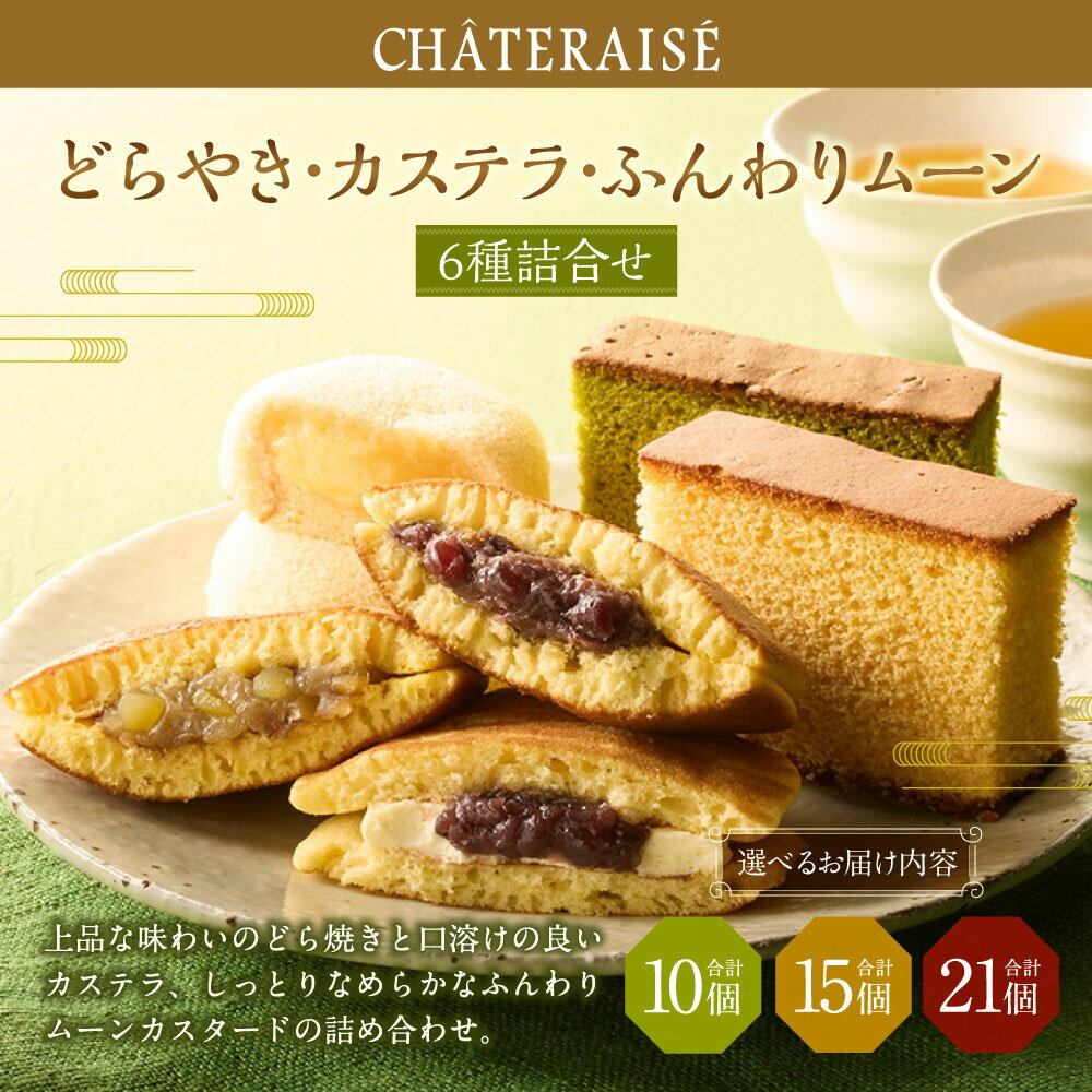 - 【ふるさと納税】<選べる内容量>【シャトレーゼ】どらやき・カステラ・ふんわりムーン 詰め合わせ 計10個 計15個 計21個 バター・大納言・和栗どら焼き ふんわりムーンカスタード 抹茶カステラ かすてら 冷蔵 山梨県 中央市 送料無料