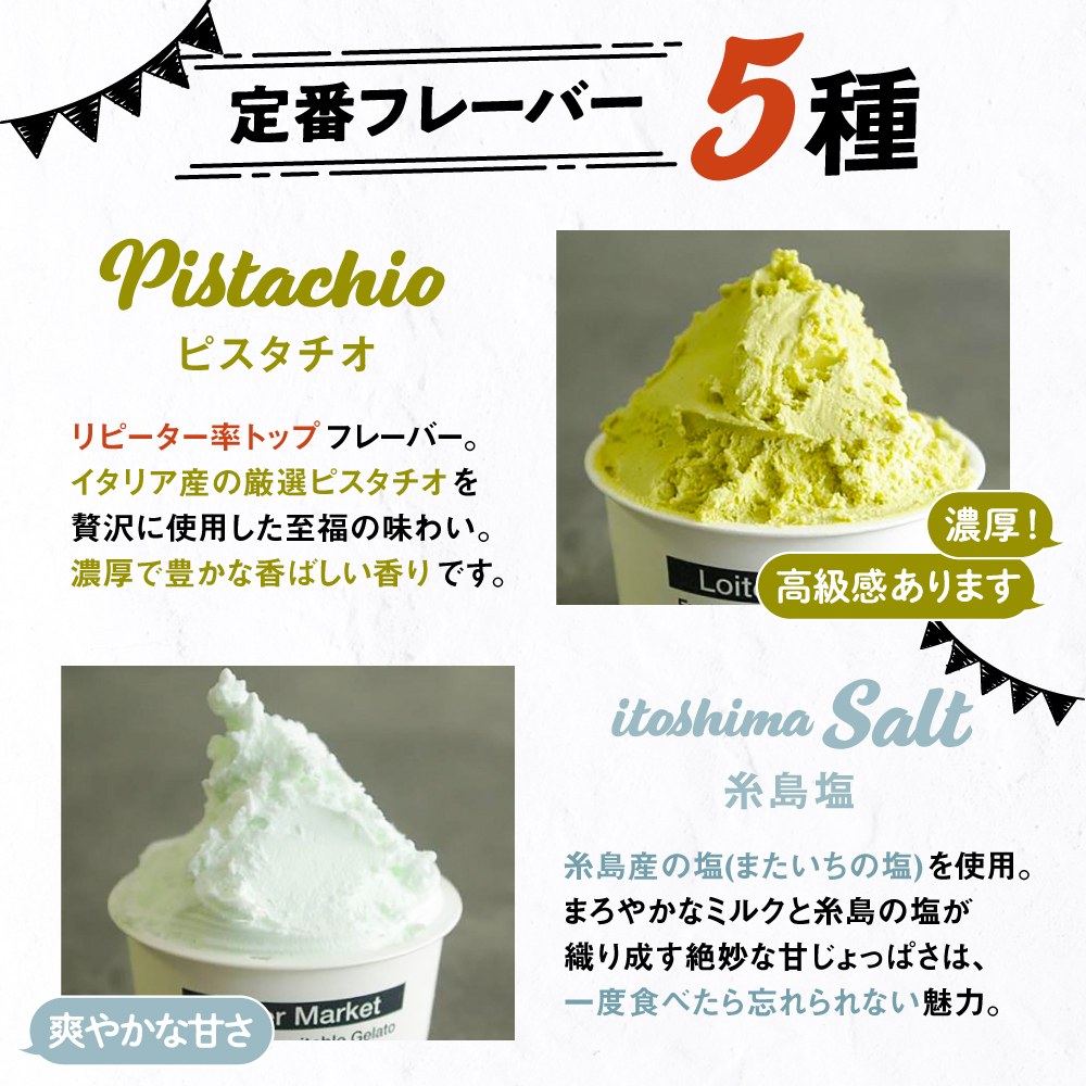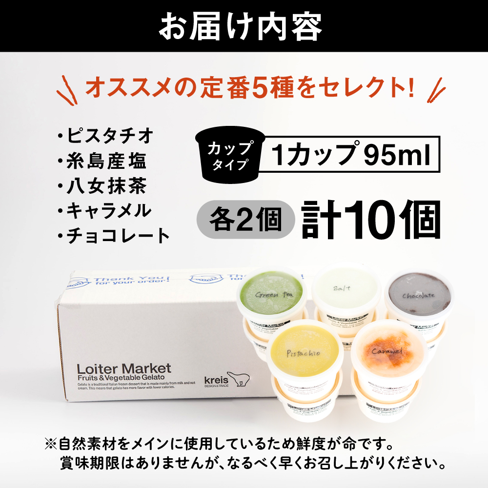 ロイターマーケット ジェラート 10個セット (おすすめ5種類×各2個)( ピスタチオ 塩 抹茶 ビターチョコ キャラメル ) 【行列のできるアイスクリーム屋】 糸島 / LoiterMarket [AGD001] アイス クリーム アイスクリーム