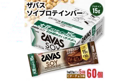 ザバス ソイプロテインバー ビターチョコ味 計60個 1箱12個入り×5箱 チョコ味 筋トレ 明治 美容 食品 手軽 タンパク質 スポーツ お菓子 おかし おやつ