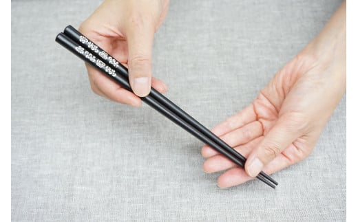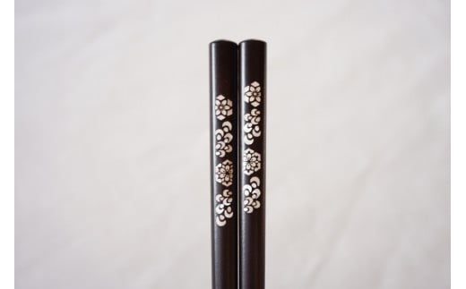 - 【貝象嵌】貝象嵌箸 唐花文様 黒檀(宝相華)