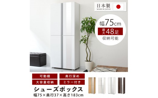 - シューズボックス ミラー付き幅75cm(ホワイトウッド)シューズラック 扉付き スリム 12段 靴箱 大容量 木製 シューズボックス 縦長 靴収納棚 下駄箱 ブーツ おしゃれ SBM307500-0-WWO