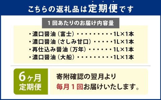 【6ヶ月定期便】 お醤油4種味比べセット / 調味料 醤油 しょうゆ おしょうゆ 濃口 こいくち 甘口 あまくち 料理 大分県 九重町