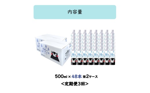 - 【ふるくま】定期便 3回 阿蘇山 天然水 500ml × 48本 2ケース 熊本 阿蘇 水 みず 飲料 くまモンラベル 熊本県 ミネラルウォーター 非加熱殺菌 賞味期限2年 730日 備蓄 保存用