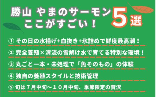 - 【ふるさと納税】福井県勝山市 勝山 やまのサーモン │ サーモン 鮭 さけ サケ 福井県産 魚 旬 新鮮 活〆 丸ごと 1尾 レビューキャンペーン 海鮮 魚介 ※2.5kg以上×2尾